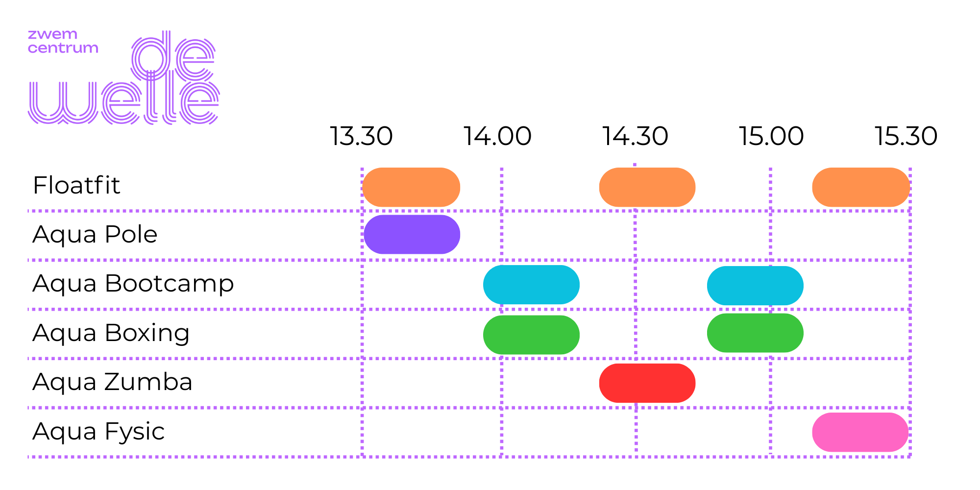 13.30 - 13.50 uur: Floatfit (activiteitenbad) & Aqua Pole (50-meterbad)